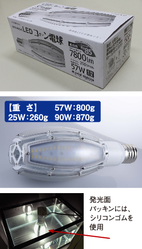 コーン電球防振パッキンを標準装備にしました。コーン電球 25Wタイプ(口金E26)・57Wタイプ(口金)E39