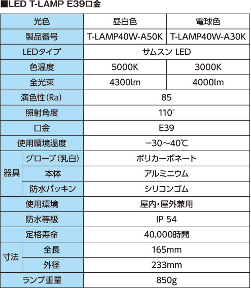 Tランプ 40W E39口金